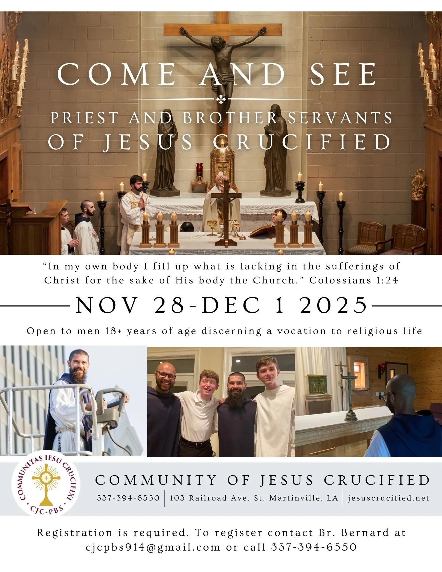 A Come & See for young men discerning a vocation to religious life. November 28 - December 1, 2025.